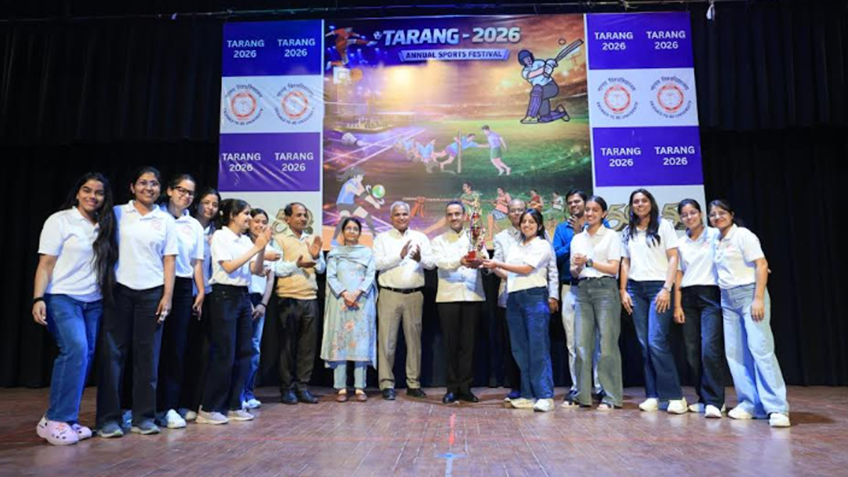 जयपुर। राष्ट्रीय आयुर्वेद संस्थान में 14 से 24 फरवरी 2026 तक आयोजित वार्षिक खेलकूद प्रतियोगिता तरंग 2026 समारोह में विभिन्न प्रतियोगिताओं के विजेता एवं उपविजेता प्रतिभागियों को ट्रॉफी एवं पुरस्कार प्रदान कर सम्मानित किया गया। इस कार्यक्रम के मुख्य अतिथि कुलपति प्रो. संजीव शर्मा रहे। इस अवसर पर रजिस्ट्रार, सभी अधिष्ठाता, संकाय सदस्य, अधिकारी तथा बड़ी संख्या में विद्यार्थी उपस्थित रहे।