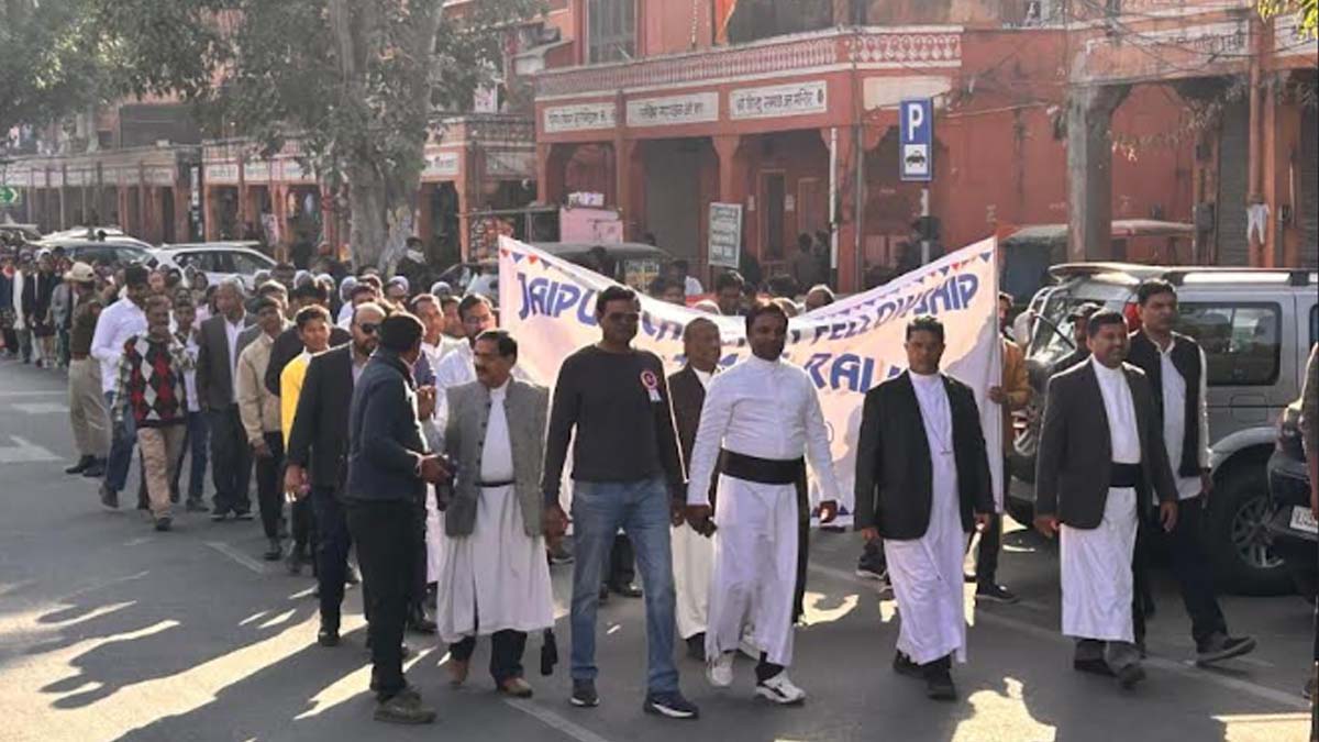 फैलोशिप के सचिव जसटिन बौनीफेस ने बताया कि क्रिसमस रैली का नेतृत्व कैथोलिक डायोसिस ऑफ जयपुर के बिशप जोजफ कल्लाकरल एवं फैलोशिप के अध्यक्ष डॉ. जॉन मैथ्यू ने किया। इस रैली का शुभारंभ रविवार दोपहर ढाई बजे सेंट जेवियर स्कूल, सी स्कीम जयपुर से किया गया।