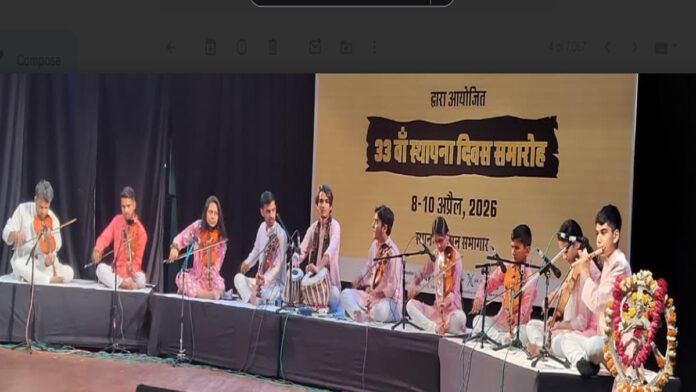 कार्यक्रम के प्रथम चरण में गुलजार वायलिन अकादमी के युवा कलाकारों—सुजान हुसैन, राहुल कुमावत, लक्ष्यता भट्ट, मानव गर्ग, लहरी कल्लम, अंकित ठठेरा, तपस्या डांगी, रिभव गुप्ता और तन्मय जोशी ने वायलिन वादन की प्रस्तुति दी, जिसमें तबले पर ज़ेयान हुसैन ने संगत की। कलाकारों ने राग खमाज में दीपचंदी ताल की बंदिश प्रस्तुत की। इसके बाद मध्यलय तीनताल में “ना मानूंगी-ना मानूंगी” बंदिश पेश की गई और अंत में द्रुत लय में झाले के साथ प्रस्तुति का समापन कर वातावरण को सुरमय बना दिया।