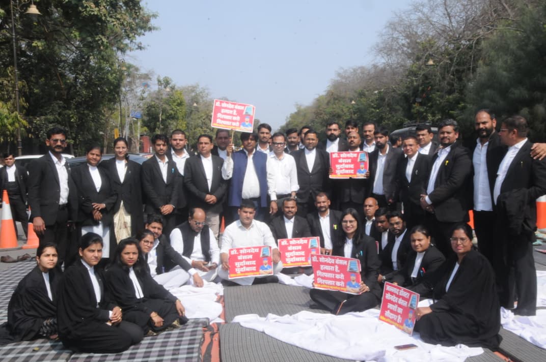 डॉ. सोनदेव बंसल की गिरफ्तारी की मांग पर वकीलों का धरना जारी