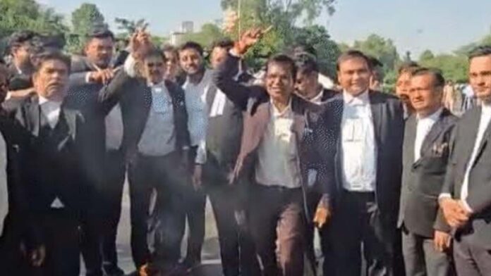 जयपुर। आदर्श नगर थाना पुलिस की ओर से एक वकील को हिरासत में लेने और कथित रूप से प्रताड़ित करने के विरोध में गुरुवार को जयपुर के वकील सड़कों पर उतर आए। आक्रोशित वकीलों ने कलेक्ट्रेट सर्किल पर मुख्य सड़क को जाम कर दिया और पुलिस प्रशासन के खिलाफ जोरदार नारेबाजी की।