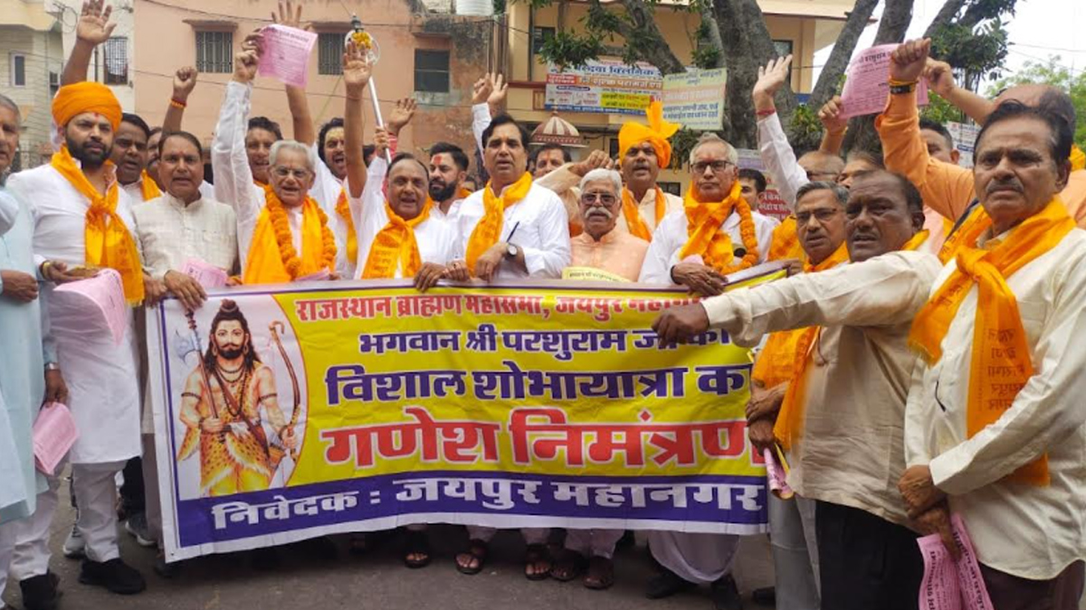 जयपुर। राजस्थान ब्राह्मण महासभा जयपुर महानगर की ओर से भगवान श्री परशुराम जन्मोत्सव के उपलक्ष्य में 23 अप्रैल को जलेबी चौक से शोभायात्रा निकाली जाएगी। निर्विघ्न आयोजन के लिए प्रथम पूज्य रिद्धि-सिद्धि के दाता भगवान श्री गणेश जी महाराज को मोती डूंगरी गणेश मंदिर में विधिवत निमंत्रण अर्पित किया गया। महामंत्री शिव कुमार भारद्वाज ने बताया कि भगवान परशुराम जी की शोभायात्रा जलेबी चौक से शाम साढ़े पांच बजे प्रारंभ होगी। शोभायात्रा छोटी चौपड़ तक निकाली जाएगी।