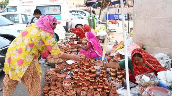 करवा चौथ व्रत सामग्री की खरीदारी के लिए गुरुवार को बाजारों में महिलाओं की भीड़ उमड़ पड़ी। महिलाओं ने चूड़ी, कंगन, बिंदिया, नेल पालिश, आर्टिफिशियल ज्वेलरी से लेकर डिजाइनर करवा और छलनी की खरीदारी की। पति की लंबी आयु के लिए निर्जला व्रत रखने वाली सुहागिनों ने साजन के नाम की मेहंदी लगवाई। मालवीयनगर, विद्याधर नगर, राजा पार्क, वैशाली नगर, मानसरोवर में मॉल के बाहर मेहंदी आर्टिस्ट देर शाम तक महिलाओं के हाथों पर मेहंदी लगाते रहे। राजस्थानी भरवां मेहंदी, छापा मेहंदी और ब्राइडल मेहंदी लगाने का क्रेज दिखा।