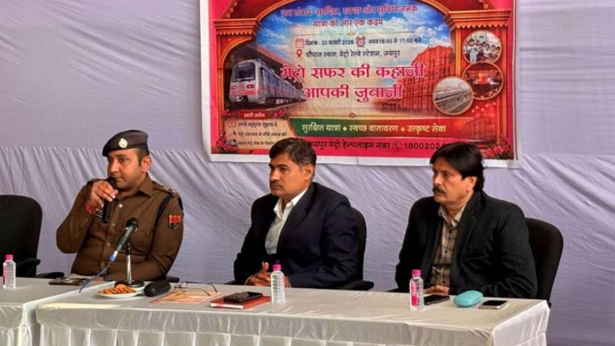 जयपुर। जयपुर मेट्रो रेल कॉरपोरेशन जयपुर के तत्वावधान में शुक्रवार को मेट्रो स्टेशनों पर यात्रियों में जागरुकता बढ़ाने और सुरक्षा देने के उद्देश्य से मेट्रो चौपाल का आयोजन किया गया। इस पहल से पहला उद्देश्य यात्रियों से सीधे संवाद करना था। मेट्रो चौपाल में यात्रियों की समस्या को सुना गया और उसके निराकरण के लिए सुरक्षित यात्रा के बारे में महत्वपूर्ण जानकारी दी गई। कार्यक्रम के दौरान सुशील कुमार पुलिस कमिश्नर जयपुर,मेट्रो रेल के करण सिंह मीणा, जीएस ऑपरेशन मेट्रो रेल एवं अन्य मेट्रो अधिकारी और कर्मचारियों से यात्रियों से बातचीत की।