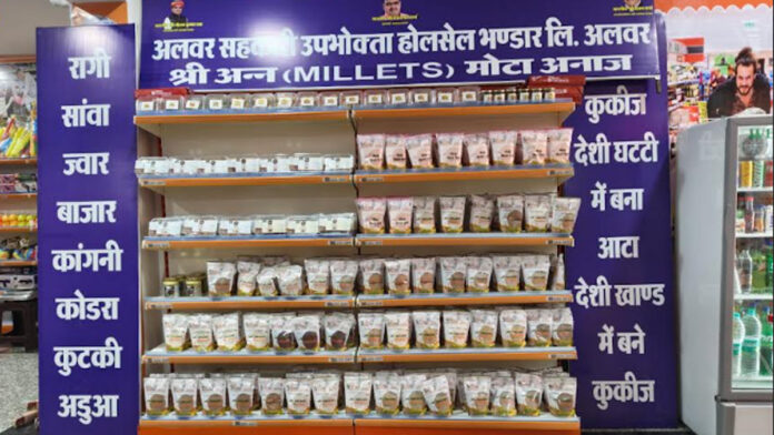 जयपुर। राज्य में सहकारी संस्थाओं एवं सहकारी समितियों के माध्यम से खोले जा रहे मिलेट आउटलेट्स आमजन को खूब पसंद आ रहे हैं। इन आउटलेट्स पर उपलब्ध श्री अन्न (मोटे अनाज) के उत्पादों के प्रति लोगों का खास आकर्षण देखने को मिल रहा है। अल्प अवधि में ही प्रदेश में निर्धारित लक्ष्य की तुलना में दोगुने से अधिक मिलेट आउटलेट्स खोले जा चुके हैं।