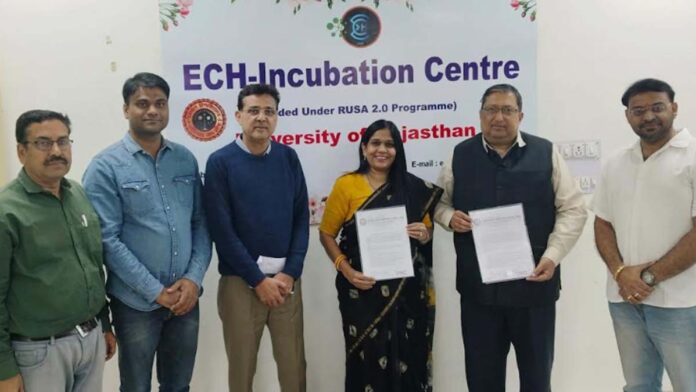 जयपुर। एपीजे अब्दुल कलाम गवर्नमेंट गर्ल्स कॉलेज गंगापोल जयपुर और उद्यमिता करियर हब (ईसीएच) इनक्यूबेशन सेंटर राजस्थान विश्वविद्यालय जयपुर के बीच शुक्रवार को एक महत्वपूर्ण समझौता ज्ञापन (एमओयू) पर हस्ताक्षर किए गए। इस एमओयू के माध्यम से एपीजे अब्दुल कलाम गवर्नमेंट गर्ल्स कॉलेज के छात्राएं और फैकल्टी राजस्थान विश्वविद्यालय के छात्रों और फैकल्टी के समान सुविधाओं का लाभ उठा सकेंगी। अब कॉलेज की छात्राएं और शिक्षक ईसीएच इनक्यूबेशन सेंटर में उपलब्ध सुविधाओं का उपयोग कर सकते हैं और अपने स्टार्टअप के लिए इनक्यूबेट के रूप में नामांकन कर सकते हैं।