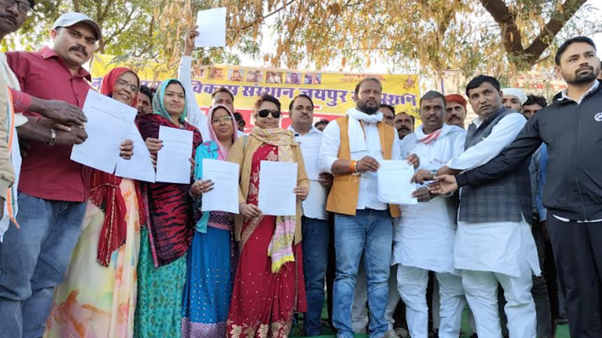 जयपुर। एक दलित परिवार की ढाई बीघा जमीन को जनरल के नाम दर्ज करने के विरोध में कालवाड़ तहसील कार्यालय का घेराव कर नायक समाज विकास संस्था के नेतृत्व में सैकडों की संख्या में नायक और घुमंतू समाज के लोगों ने एक दिवसीय धरना-प्रदर्शन किया गया और साथ ही मुख्यमंत्री और जिला कलेक्टर के नाम नायब तहसीलदार को ज्ञापन देकर कार्रवाई करने की मांग की। साथ ही मांगे नहीं माने जाने पर चार अप्रेल को शहीद स्मारक गोरमेंट हाॅस्टल पर विशाल धरना-प्रदर्शन किया जाएगा और जिसमे प्रदेश भर के घुमंतू समाज बंधू शामिल होंगे। इसके बाद एक सभा आयोजित कर मुख्यमंत्री आवास का घेराव किया जाएगा। जहां पुलिस उन्हे रोकती है तो सर्व समाज वहीं बैठ कर भूख-हडताल शुरू कर करेगा।