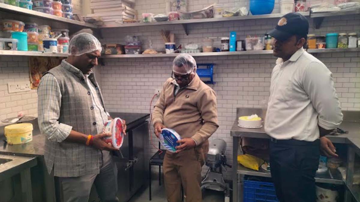 मैन्युफैक्चरिंग एरिया में सफाई संतोषजनक नहीं पाई गई। डस्टबिन भी खुले हुए रखे थे। बटरस्कॉच केक एवं कुकीज के नमूने खाद्य सुरक्षा एवं मानक अधिनियम के अंतर्गत लिए गए। जांच रिपोर्ट प्राप्त होने पर अग्रिम कार्यवाही की जाएगी। फर्म के मैनेजर राधेश्याम सिंह को अखबार का उपयोग तुरंत बंद कर बटर पेपर काम में लेने के लिए पाबंद किया गया।
