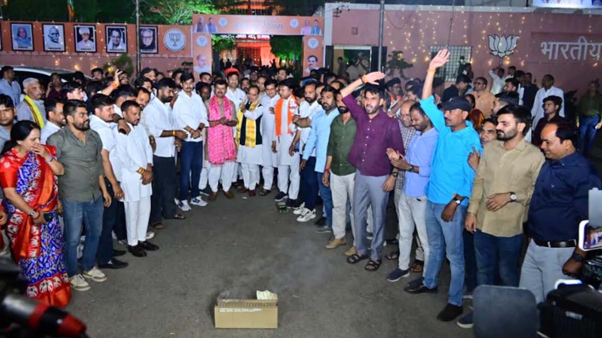 भाजपा के स्थापना दिवस की पूर्व संध्या पर पार्टी कार्यालय में भव्य आतिशबाजी और दीपोत्सव कर सजाई रंगोली