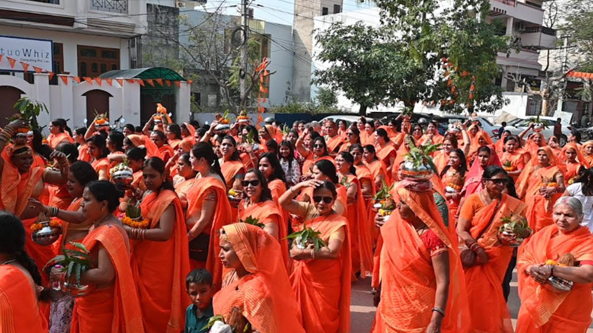 जयपुर। वैशाली नगर की चित्रकूट स्टेडियम में शनिवार को विराट हिंदू सम्मेलन का भव्य आयोजन किया गया। कार्यक्रम का शुभारंभ 700 से अधिक मातृशक्ति द्वारा सामाजिक समरसता के प्रतीक भव्य कलश यात्रा के साथ हुआ। राष्ट्रभाव से ओतप्रोत वातावरण में क्षेत्र के 2000 हजार सकल हिन्दू समाज ने उत्साहपूर्वक सहभागिता किया।