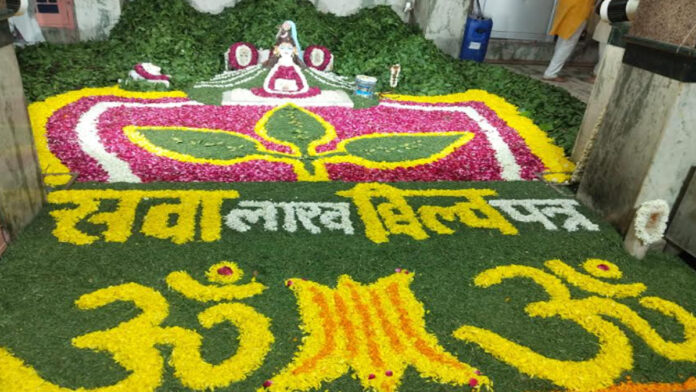 जयपुर। श्रावण मास के आखिरी सोमवार को दिल्ली रोड स्थित आनंदेश्वर महादेव मंदिर में प्रदोष मंडल के सहयोग से सवा लाख बेलपत्र का आयोजन किया गया । श्री नरवर आश्रम सेवा समिति के अध्यक्ष गिरधारी लाल शर्मा ने बताया कि ब्रह्मलीन राधेलाल चौबे की प्रेरणा आशीर्वाद से यह आयोजन हर साल किया जाता है।