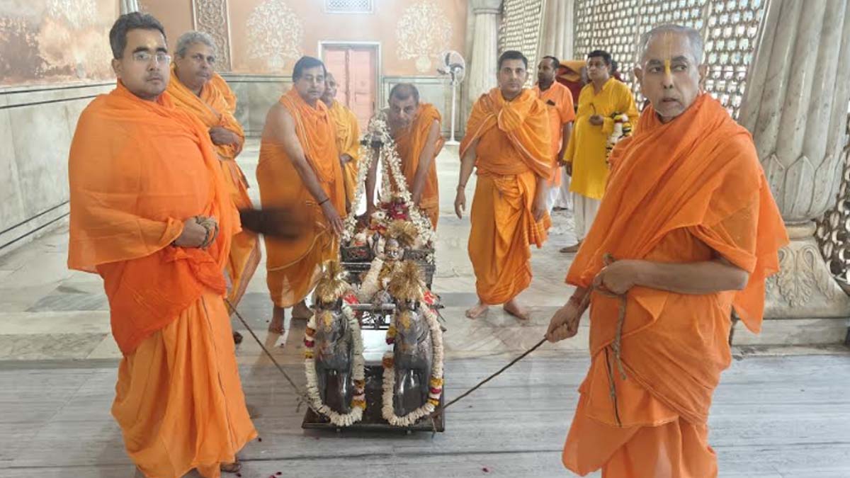 अभिषेक पश्चात ठाकुर श्री शालिग्राम जी एवं तुलसी महारानी जी की आरती एवं भोग अर्पण किया गया। तत्पश्चात तुलसी महारानी एवं श्री शालिग्राम जी की चार परिक्रमा कर ठाकुर श्री शालिग्राम जी को चांदी के रथ में विराजमान कर मंदिर की एक परिक्रमा करने पश्चात पुनः गर्भगृह में ठाकुर श्रीजी के समीप विराजमान कर दिया गया।