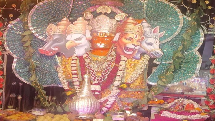 11000 लड्डूओ की झांकी सजाकर हनुमान जी की महाआरती की । मंदिर प्रांगण में हवन ,हनुमान चालीसा पाठ, भजन कीर्तन, सुंदरकांड पाठ का आयोजन देर रात तक हुआ । हनुमान जन्मोत्सव के मौके पर जगह-जगह से श्रद्धालु पदयात्रा लेकर निज मंदिर आएंगे और भगवान को ध्वज अर्पित किया ।