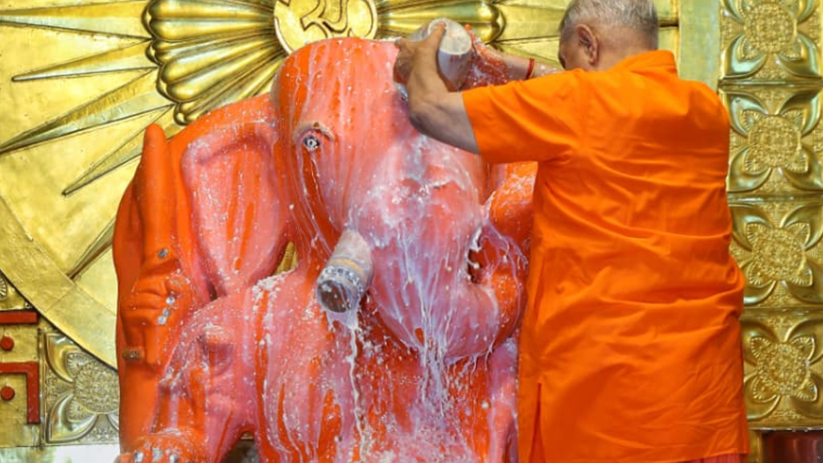 केवड़ा जल, गुलाब जल, केवड़ा इत्र एवं गुलाब इत्र से भी अभिषेक किया गया। पंचामृत अभिषेक के बाद पुन: गंगाजल से शुद्ध स्नान कराया गया। भगवान श्री गणेश जी महाराज को नवीन पोशाक धारण कर गणपति सहस्त्रनाम के पाठ के साथ 1008 मोदक अर्पित किए गए और फूल बंगला झांकी सजाई गई। गणेश जी महाराज को खीर का विशेष भोग अर्पित किया गया। श्रद्धालुओं को रक्षा सूत्र निशुल्क वितरित किए गए। बड़ी संख्या में श्रद्धालुओं ने दर्शन कर पुण्य लाभ प्राप्त किया।