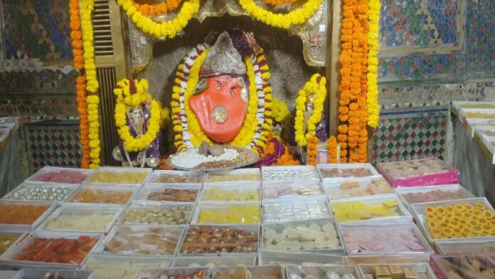 जयपुर। चांदपोल स्थित परकोटा गणेश मंदिर मे पाटोत्सव वार्षिकोत्सव के मौके पर प्रथम पूज्य की छप्पन भोग फूल बंगला झांकी सजाई ब्रह्मलीन महंत कैलाश चंद शर्मा की प्रेरणा और उनके आशीर्वाद से वार्षिक उत्सव मनाया।