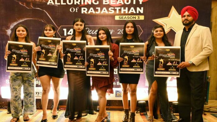 जयपुर। राजधानी जयपुर में शनिवार को माइंड ब्लोइंग फिल्म प्रमोशन एवं रिवाइव हॉलीडेज प्रा.लि. के सहयोग से आयोजित किए जा रहे राजस्थान के प्रतिष्ठित एवं ब्यूटी पेजेंट “मिस अल्यूरिंग ब्यूटी ऑफ राजस्थान एंड नेशनल डायनामिक अवॉर्ड – सीज़न 3” की पोस्टर लॉन्चिंग सेरेमनी का आयोजन किया गया। यह प्रदेश की इकलौती एक ऐसी स्टेट लेवल ब्यूटी प्रतियोगिता है, जिसके पार्टिसिपेंट्स को बॉलीवुड मूवीज, वेबसीरीज, म्यूजिक वीडियो एल्बम में अपने हुनर को शोकेस करने का सुनहरा अवसर प्रदान किया जाता है।