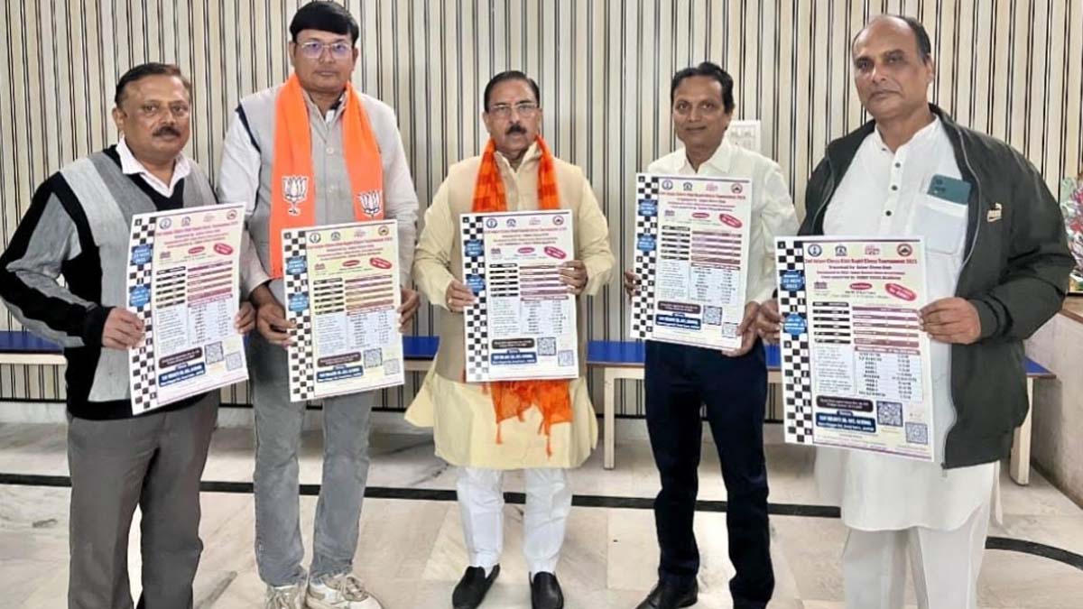 जयपुर। आगामी सैंकड जयपुर शतरंज क्लब रैपिड शतरंज टूर्नामेंट 2025 का पोस्टर विमोचन अध्यक्ष वित्त आयोग राजस्थान अरुण चतुर्वेदी के कर-कमलों से हुआ । टूर्नामेंट को ऑर्डिनेटर जिनेश कुमार जैन ने बताया कि यह टूर्नामेंट 23 नवंबर (रविवार) को नव भारती सीनियर सेकेंडरी स्कूल स्वेज फार्म जयपुर में आयोजित होगी।