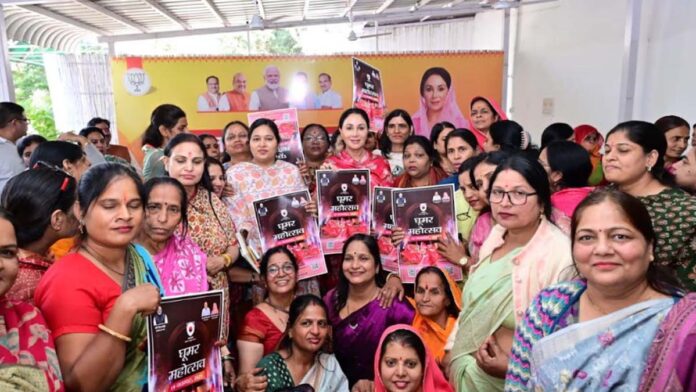 जयपुर। 19 नवंबर को होने वाले संभाग स्तरीय घूमर–2025 महोत्सव को लेकर तैयारियां जोरों पर हैं। उपमुख्यमंत्री दीया कुमारी ने सिविल लाइंस स्थित सरकारी आवास पर महिला मोर्चा, महिला पार्षदों और कार्यकर्ताओं के साथ बैठक की। बैठक में उन्होंने अब तक किए गए प्रचार-प्रसार की समीक्षा की और कार्यक्रम को व्यापक स्तर पर लोगों तक पहुँचाने पर जोर दिया।