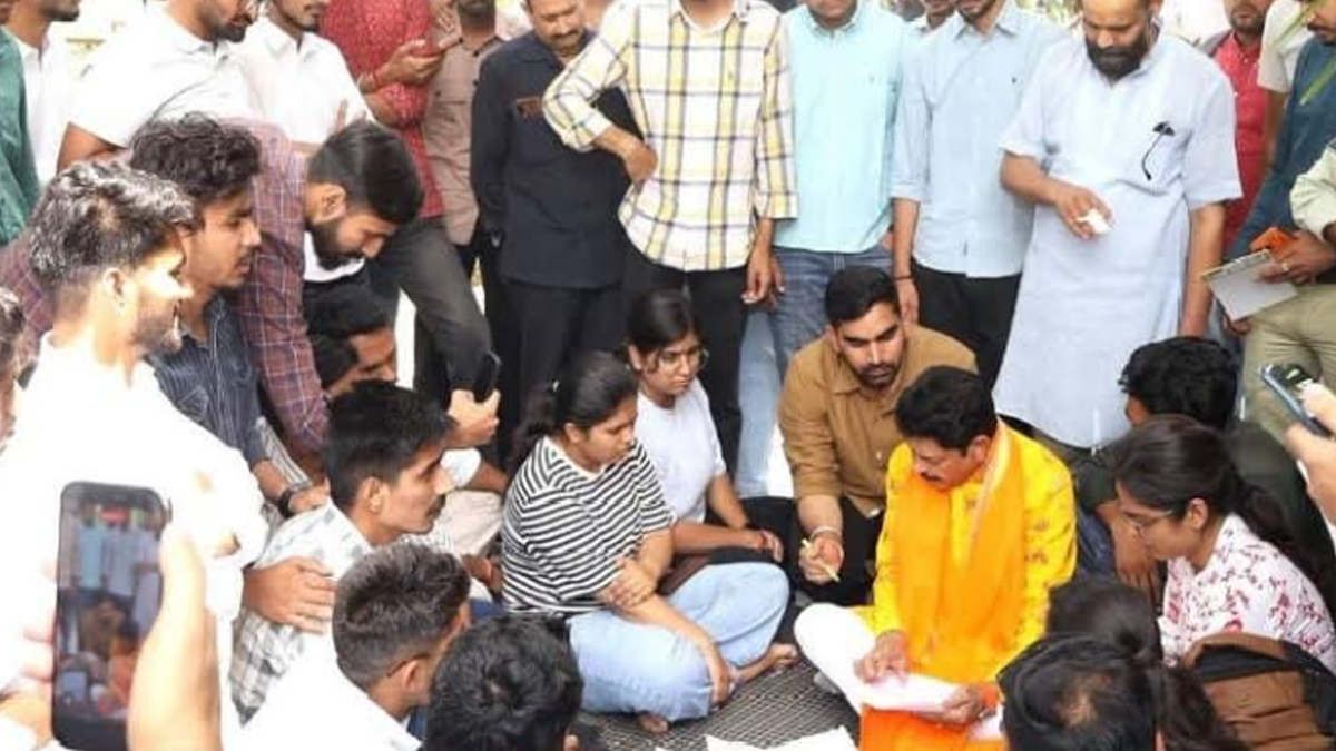 जयपुर। राजस्थान यूनिवर्सिटी में राजस्थानी भाषा में मास्टर डिग्री की अधिक फीस को लेकर चल रहा छात्रों का विरोध शनिवार को समाप्त हो गया। पिछले 6 दिनों से भूख हड़ताल पर बैठे छात्र-छात्राओं की तबीयत बिगड़ने पर सिविल लाइंस विधायक व सिंडिकेट सदस्य गोपाल शर्मा मौके पर पहुंचे और नारियल पानी पिलाकर हड़ताल समाप्त करवाई।