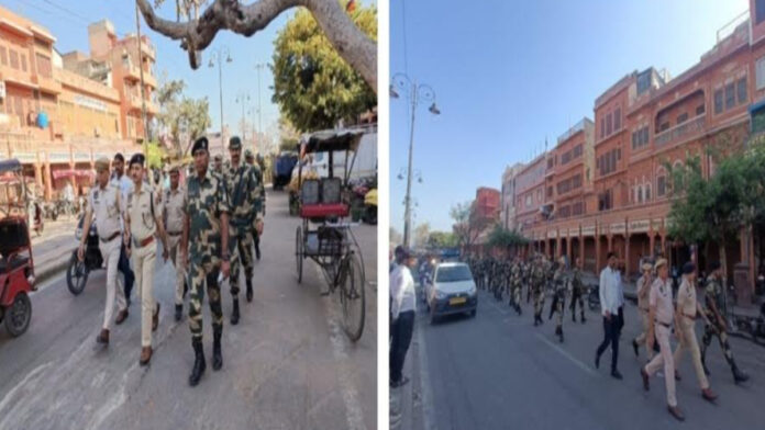 रामगंज जयपुर उत्तर ने केंद्रीय पुलिस बल बीएसएफ के साथ निकाला फ्लेग मार्च