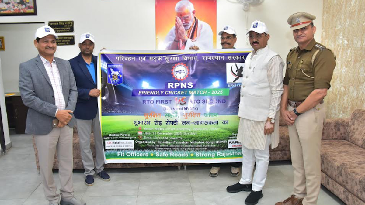 जयपुर। राजस्थान सरकार के “2 साल—नव उत्थान—नई पहचान, बढ़ता राजस्थान—हमारा राजस्थान” अभियान के तहत सड़क सुरक्षा को लेकर चल रहे प्रयासों की कड़ी में राजस्थान परिवहन निरीक्षक संघ (आरपीएनएस) की ओर से आयोजित आरपीएनएस फ्रेंडली क्रिकेट मैच-2025 के बैनर का शनिवार को अनावरण किया गया। बैनर का अनावरण उपमुख्यमंत्री डॉ. प्रेमचंद बैरवा ने सिविल लाइंस स्थित अपने आवास पर किया।
