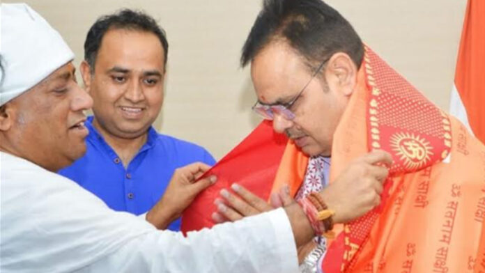 जयपुर। श्री अमरापुर स्थान जयपुर के पूज्य संत श्री मोहन लाल महाराज संत मोनू राम साईं एवं संत मंडल ने राजस्थान के मुख्यमंत्री भजन लाल शर्मा से शिष्टाचार भेंट कर सिंधी समाज के ईष्टदेव भगवान श्री झूलेलाल के जन्मोत्सव चेटीचंड पर्व एवं हिंदू नववर्ष नवसंवत्सर 2083 की अग्रिम शुभकामनाएं एवं बधाईयां दी ।