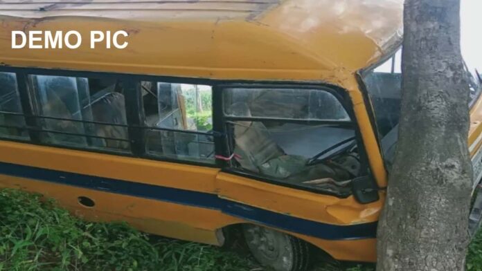 जयपुर। दूदू थाना इलाके में शुक्रवार को तेज रफ्तार स्कूल बस अनियंत्रित होकर पेड़ से टकरा गई। इस हादसे में चार स्कूली बच्चे घायल हो गए। हादसे की बाद घटना स्थल पर ग्रामीणों की भीड़ लग गई। जिसके बाद राहगीरों ने बच्चों ने दूदू अस्पताल में भर्ती कराया। सूचना पर मौके पर पहुंची पुलिस ने क्रेन की सहायता से क्षतिग्रस्त बस को साइड में करवा यातायात सुचारु करवाया। पुलिस ने बस चालक के खिलाफ लापरवाही से बस चलाने का मामला दर्ज कर जांच शुरु कर दी है।