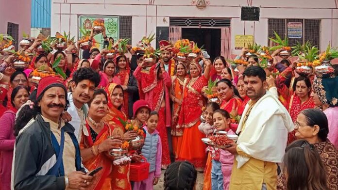 जयपुर। मुरलीपुरा की शंकर विहार कॉलोनी के श्री लक्ष्मी नारायण मंदिर में मंगलवार से श्रीमद् भागवत कथा का शुभारंभ हुआ। विकासनगर स्थित श्री राधा गोविन्द मंदिर से गाजेबाजे के साथ कथा स्थल तक कलश यात्रा निकाली गई। बड़ी संख्या में महिलाएं सिर पर कलश लेकर मंगल गीत गाती चल रहीं थी। वहीं यजमान सिर पर भागवत पोथी लेकर चल रहे थे। जगह-जगह पुष्प वर्षा कर कलश यात्रा का स्वागत किया गया। कथा स्थल पर कलश यात्रा के पहुंचने पर कलशों की आरती उतारी।