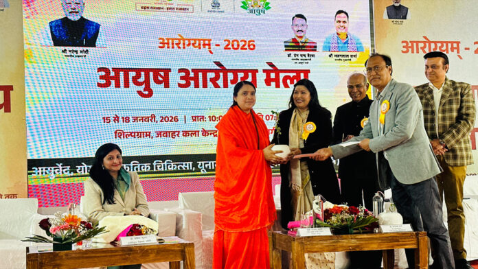 जयपुर। आधुनिक जीवनशैली में बढ़ते तनाव और मानसिक दबाव के बीच शारीरिक व मानसिक स्वास्थ्य के प्रति जागरूकता फैलाने के उद्देश्य से जवाहर कला केंद्र शिल्पग्राम में आयोजित ‘आरोग्यम हेल्थ कैंप 2026’ में दिव्य ज्योति जाग्रति संस्थान (डीजेजेएस) की प्रतिनिधि साध्वी लोकेशा भारती ने मुख्य अतिथि के रूप में शिरकत की। शिविर में बड़ी संख्या में लोगों की सहभागिता रही।