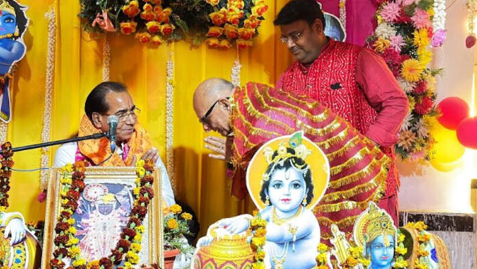 गीता गायत्री मंदिर में भागवत कथा में कृष्ण और सुदामा की झांकियों का हुआ मंचन