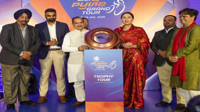 जयपुर। बजाज पुणे ग्रैंड टूर 2026 की प्रतिष्ठित और विरासत-प्रेरित ट्रॉफी का शनिवार को जयपुर में भव्य अनावरण किया गया। यह गरिमामयी समारोह राजस्थान की उपमुख्यमंत्री दीया कुमारी तथा जितेंद्र डूडी (आईएएस), कलेक्टर, पुणे जिला (रोड रेस का मेज़बान शहर) की गरिमामयी उपस्थिति में संपन्न हुआ।