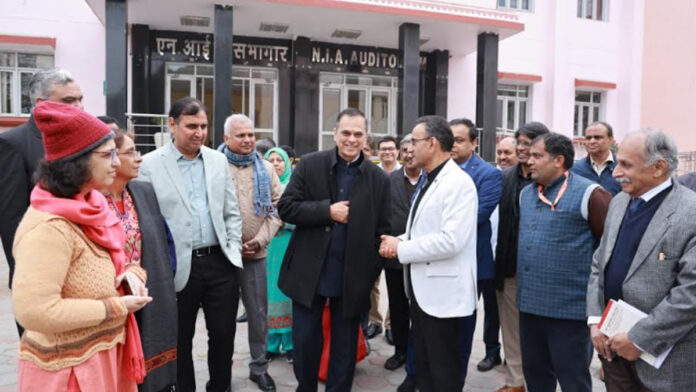जयपुर। जोरावर सिंह गेट स्थित राष्ट्रीय आयुर्वेद संस्थान (मानद विश्वविद्यालय) जयपुर में शनिवार को राजस्थान सरकार के मुख्य सचिव वी. श्रीनिवास ने एकदिवसीय दौरा किया। इस दौरान संस्थान के कुलपति प्रोफेसर संजीव शर्मा ने उनका स्वागत किया।