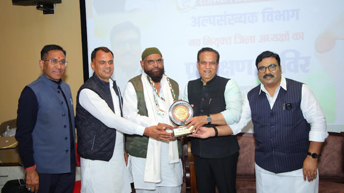 जयपुर। जयपुर के कॉन्स्टिट्यूशन क्लब में शनिवार को राजस्थान प्रदेश कांग्रेस कमेटी के अल्पसंख्यक विभाग द्वारा सभी नव-नियुक्त जिला अध्यक्षों के सम्मान समारोह एवं प्रशिक्षण शिविर का आयोजन किया गया। इस कार्यक्रम का उद्देश्य पार्टी की रीति-नीति से नवनियुक्त पदाधिकारियों को अवगत कराना तथा संगठन को और अधिक सशक्त बनाना रहा।