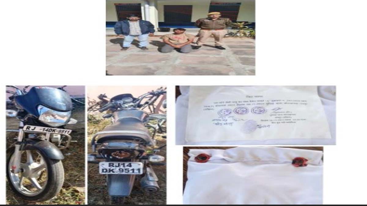 पुलिस ने गिरफ्तार मुख्य आरोपित के कब्जे से वारदात के काम में ली गई मोटरसाईकिल व आधा तोला-सोने का जंतर बरामद कर लिया है। पुलिस ने पूछताछ के बाद बाल अपचारी को बाल -सुधारगृह भिजवा दिया।