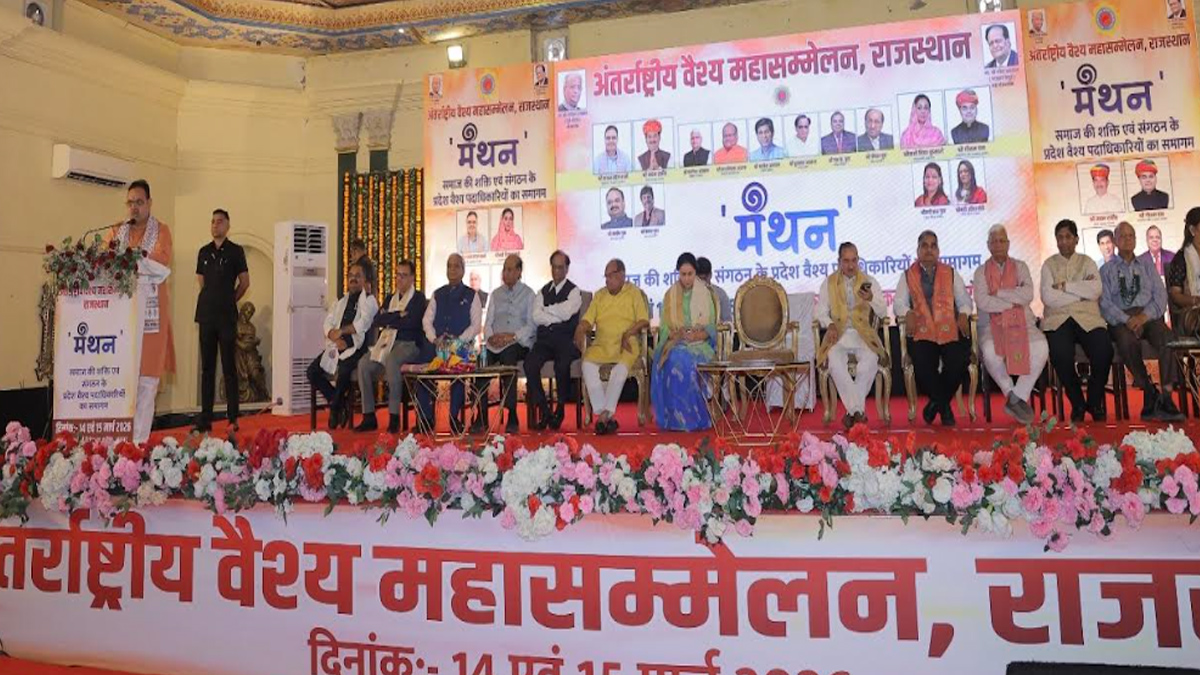 जयपुर। अंतरराष्ट्रीय वैश्य फेडरेशन – राजस्थान द्वारा आयोजित “वैश्य महासम्मेलन – राजस्थान” के अंतर्गत “मंथन : समाज की शक्ति एवं संगठन के सुदृढ़ीकरण हेतु प्रदेश वैश्य पदाधिकारियों का समागम” का भव्य शुभारंभ शनिवार को जयपुर स्थित समुराई पैलेस रिसोर्ट में हुआ। प्रदेशभर से आए वैश्य समाज के पदाधिकारियों, प्रतिनिधियों एवं गणमान्य अतिथियों की उपस्थिति से सभागार खचाखच भरा रहा, जिससे समाज की एकजुटता और उत्साह का प्रभावशाली वातावरण दिखाई दिया।