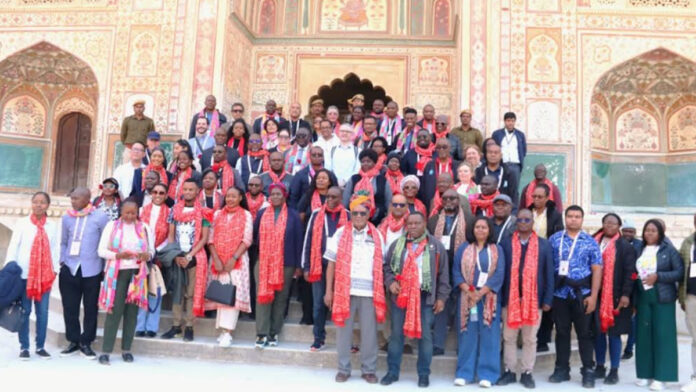 आमेर महल पहुंचने पर प्रतिनिधिमंडल का पारंपरिक राजस्थानी रीति-रिवाजों से भव्य एवं आत्मीय स्वागत किया गया। लोक वाद्य यंत्रों की मधुर ध्वनि, पारंपरिक आतिथ्य और राजस्थानी संस्कृति की जीवंत झलक ने विदेशी मेहमानों को विशेष रूप से आकर्षित किया।