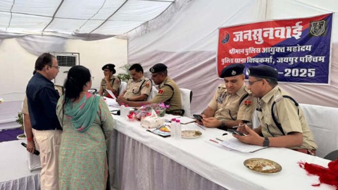 जयपुर। जयपुर पुलिस कमिश्नर बीजू जॉर्ज जोसफ ने गुरुवार को विश्वकर्मा थाने में जनसुनवाई कर परिवादियों की समस्याएं सुनी और मौके पर ही संबंधित अधिकारियों को निस्तारण के निर्देश भी दिए।