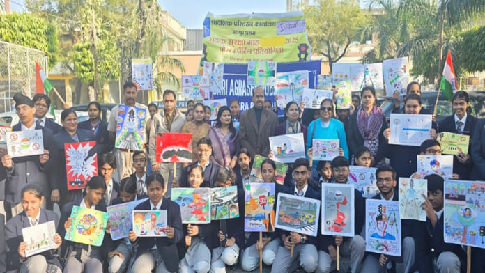 जयपुर। प्रादेशिक परिवहन विभाग की ओर से व दिव्यांशी जन सेवा संस्थान राजस्थान संचालित राज्य सड़क सुरक्षा जागरूकता अभियान के तहत मंगलवार को सांगानेरी गेट स्थित श्री अग्रसेन पब्लिक स्कूल के विद्यार्थियों ने सड़क सुरक्षा विषय पर आधारित रचनात्मक ड्राइंग एवं पेंटिंग आयोजित की गई, सड़क सुरक्षा जागरूकता अभियान रथ का शुभारंभ भी किया गया। इस मौके पर विद्यार्थियों के साथ आमजन को हेलमेट पहनने, जेब्रा क्रॉसिंग का पालन, ट्रेफिक सिग्नल का सम्मान तथा सुरक्षित वाहन संचालन जैसे महत्वपूर्ण संदेश दिए गए।