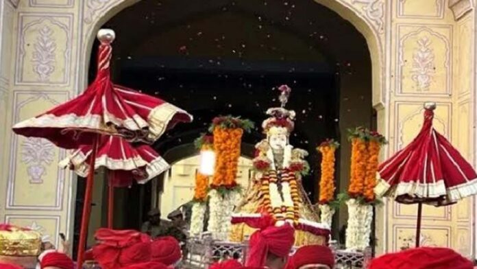 जयपुर। विश्व प्रसिद्ध गणगौर महोत्सव के तहत राजधानी जयपुर में 21 और 22 मार्च 2026 को गणगौर माता की भव्य शाही सवारी निकाली जाएगी। यह सवारी सिटी पैलेस की जनाना ड्योढ़ी से शाम करीब 5:45 बजे शुरू होकर त्रिपोलिया गेट से होकर पारंपरिक मार्ग त्रिपोलिया बाजार,छोटी चौपड़,गणगौरी बाजार से आगे बढ़ते हुए ताल कटोरा पहुंचकर संपन्न होगी।