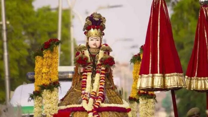 जयपुर। चैत्र शुक्ल तृतीया शनिवार को विभिन्न शुभ योग में सुहाग पर्व गणगौर धूमधाम से मनाया जाएगा। महिलाएं गणगौर माता का पूजन कर और सुख—समृद्धि की कामना करेंगी। शाम को सिटी पैलेस के जनानी ड्योढ़ी से गणगौर की शाही सवारी निकलेगी। शाही ठाठबाट के साथ निकलने वाली गणगौर माता की सवारी के दौरान लोकरंग भी बिखरेंगे। चौगान होते हुए गणगौर माता की सवारी ताल कटोरा के सामने पौंड्रिक उद्यान की छतरी पर पहुंचेंगी वहां मेला भरेगा।
