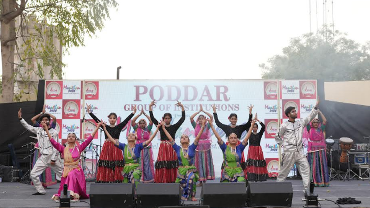 जयपुर। रैंप पर स्टूडेंट्स ने अपनी खूबसूरत अदायगी के जरिए शानदार परफॉर्मेंस प्रस्तुत किया। मौका था पोद्दार ग्रुप ऑफ इंस्टीट्यूशन्स में चल रहे इंटरकोलेजिएट फेस्ट मंथन 2026 के उन्नीसवे एडिशन के तीसरे दिन आयोजित कार्यक्रम का। जगतपुरा स्थित कैंपस में ग्रुप डांस और रैंप वॉक की जबरदस्त परफॉर्मेंस ने समा बांध दिया। एक लंबा ऊंचा कद…., तेनु शरारत सिखावा…सरीखे थीम बेस्ड ग्रुप डांस और रैंप शो की खूबसूरत बानगी ने शनिवार की शाम को अपने रंग में हर आम ओ खास को सराबोर कर दिया।