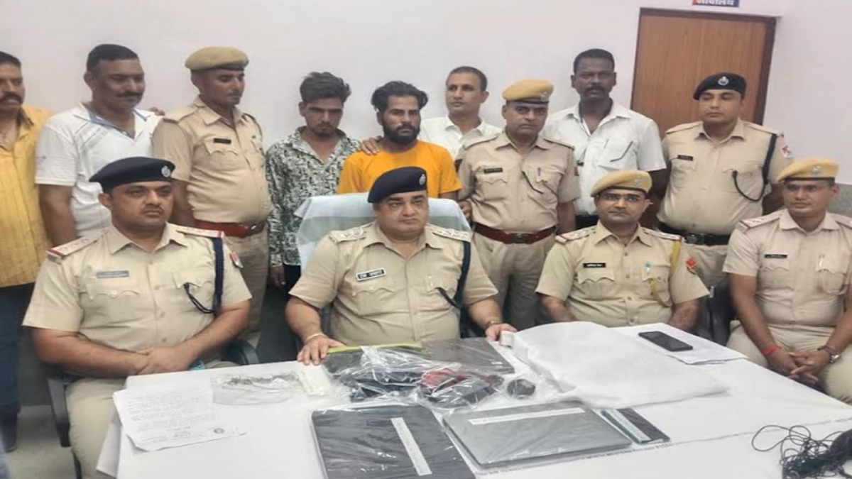 जयपुर/अजमेर। रेलवे स्टेशन पर खड़ी ट्रेन के एसी कोच में सो रहे यात्रियों के कीमती सामान चोरी करने वाले गिरोह का अजमेर जीआरपी व आरपीएफ ने खुलासा कर दो सदस्यों मुकेश सिंह रावत पुत्र मदन सिंह (26) निवासी गांव आखरी थाना गेगल एवं पिंटू गुर्जर पुत्र सूरजमल (24) निवासी गांव मुहामी थाना गेगल जिला अजमेर को गिरफ्तार कर चोरी के तीन लैपटॉप मय बैग, एक मोबाइल, वायरलेस एयरपॉड्स, हार्ड डिस्क ड्राइव, लेडीज पर्स मय नकदी एवं चांदी के जेवर बरामद किये है।