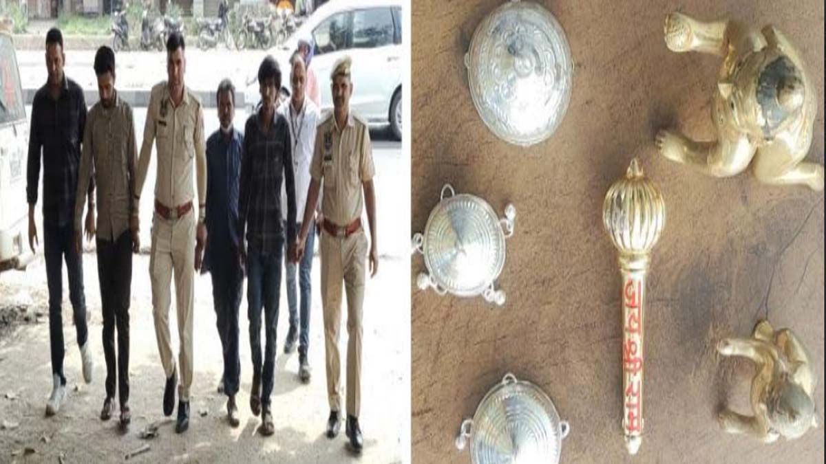 पुलिस उपायुक्त जयपुर पश्चिम प्रशांत किरण ने बताया कि हरमाड़ा थाना पुलिस ने मंदिर चोरी के मामले में आरोपित विष्णु बंजारा (23), कमल प्रजापत (27) और शंकर बंजारा (66) को गिरफ्तार किया गया। तीनों ही आरोपित दौलतपुरा इलाके के रहने वाले है। साथ ही पुलिस ने आरोपियों के कब्जे से चोरी किया गया चांदी का सामान और मूर्तियां बरामद की गई हैं।