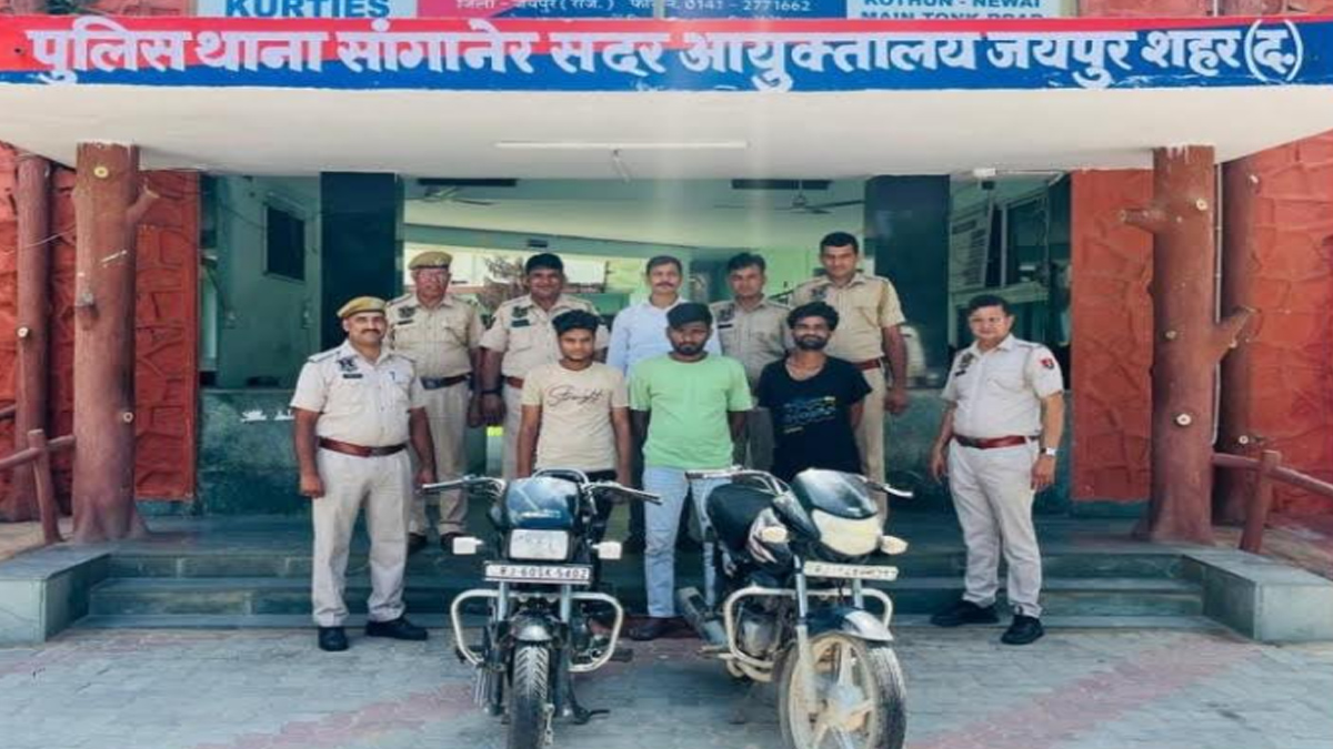 जयपुर। सांगानेर सदर थाना पुलिस ने वाहन चोरी और मोबाइल स्नैचिंग के मामले में तीन बदमाशों को गिरफ्तार किया हैं। पुलिस ने तीनों बदमाशों के पास से चोरी की गई दो बाइक और लूटे गए मोबाइल बरामद किये हैं। वहीं पुलिस जानकारी में सामने आया है कि गिरफ्तार बदमाश को सांगानेर थाना पुलिस ने तीन माह पहले गिरफ्तार किया था और जेल से बाहर आने के बाद दोबारा से वारदात करना शुरू कर दिया हैं। वहीं आरोपित ने अपनी एक गैंग बना ली जो वारदात किया करती हैं।