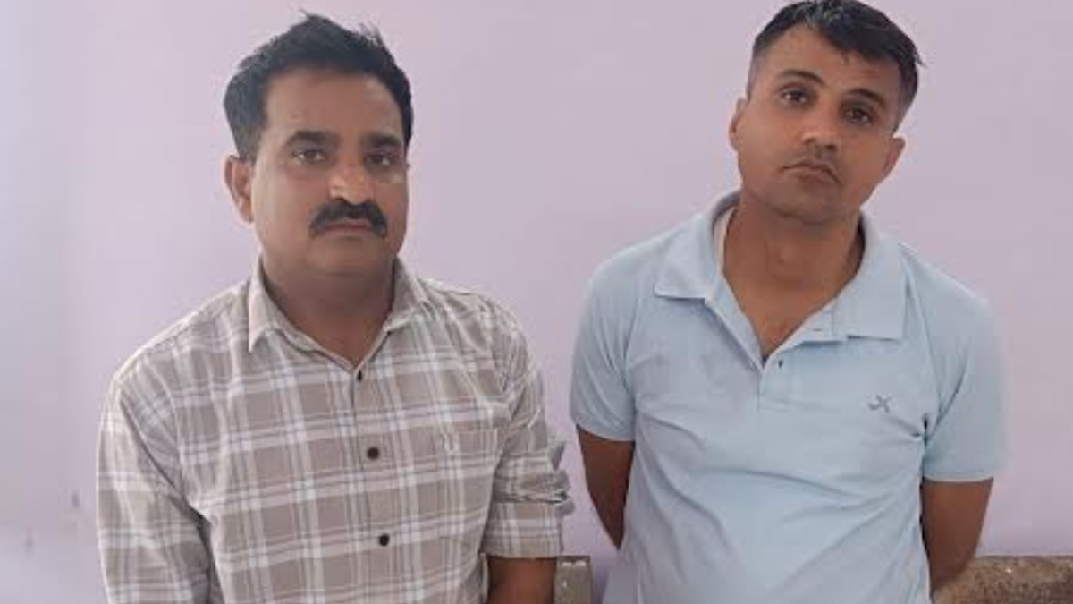 Two police personnel, including the Station House Officer, arrested for accepting a bribe of ₹8 lakh.