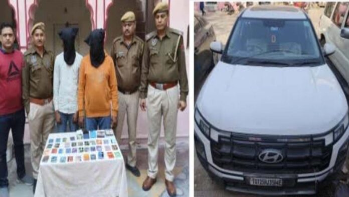 जयपुर। सुभाष चौक थाना पुलिस ने कार्रवाई करते हुए एटीएम कार्ड बदलकर ठगी करने वाले गिरोह के दो शातिर बदमाशों को बापर्दा गिरफ्तार किया है। साथ ही पुलिस ने बदमाशों के कब्जे से विभिन्न बैंकों के 147 एटीएम कार्ड, बिना नंबर की क्रेटा कार और 49 हजार रुपए नकद बरामद किए गए हैं। पुलिस की प्रारम्भिक पूछताछ में सामने आया कि आरोपियों ने जयपुर, हरियाणा और दिल्ली में सौ से अधिक वारदात करना स्वीकार किया है। फिलहाल आरोपियों से पूछताछ की जा रही है।