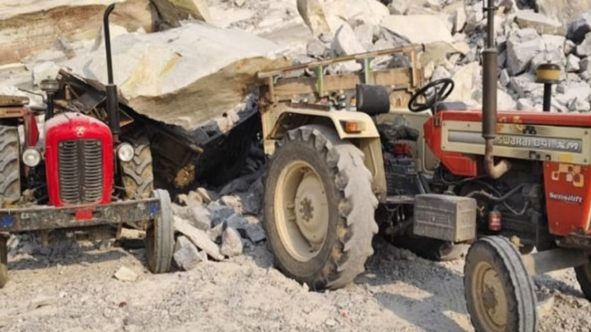 अवैध खनन करते समय खदान ढहने से सौ फीट ऊंचाई से गिरी चट्टान में मजदूर सहित दो ट्रैक्टर-ट्रॉली दबी