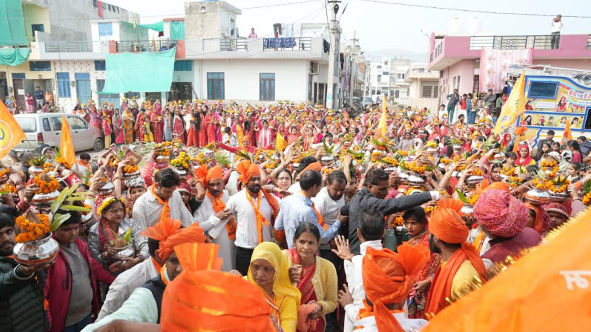 जयपुर। राष्ट्रीय स्वयंसेवक संघ के 100 वर्ष पूर्ण होने के उपलक्ष्य में रविवार को विभिन्न स्थानों पर विराट हिंदू सम्मेलन के आयोजन हुए। आदर्श नगर स्थित आनन्दपुरी पार्क में सुबह 11 बजे से हिन्दू सम्मेलन का आयोजन हुआ। मुख्य वक्ता युवाचार्य स्वामी राघवेंद्र आचार्य महाराज ने आयोजन में शिरकत की। इससे पूर्व धार्मिक, सांस्कृतिक एवं सामाजिक चेतना को जागृत करने के उद्देश्य से सुबह बीस दुकान स्थित कृष्णा मंदिर से गाजेबाजे के साथ 1100 महिलाओं की कलश यात्रा निकाली।
