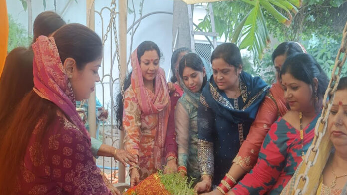 सुहागिन महिलाओं ने मां गौरी और भगवान शिव से पल्लव प्रार्थना कर अपने पति और परिवार की सुख समृद्धि की कामना के साथ अखिल विश्व के कल्याण की कामना की ।शहर की सिंधी कॉलोनियों आदर्श नगर ,बसंत बहार , बनीपार्क ,कंवर नगर ,शास्त्री नगर,मानसरोवर ,प्रताप नगर , सहित कई स्थानों पर मीना संगतानी ,सपना बुधवानी , कंचन भंबानी ,जय श्री जेठानी और तनु जेठानी आदि कई महिलाओं ने पूजन किया ।